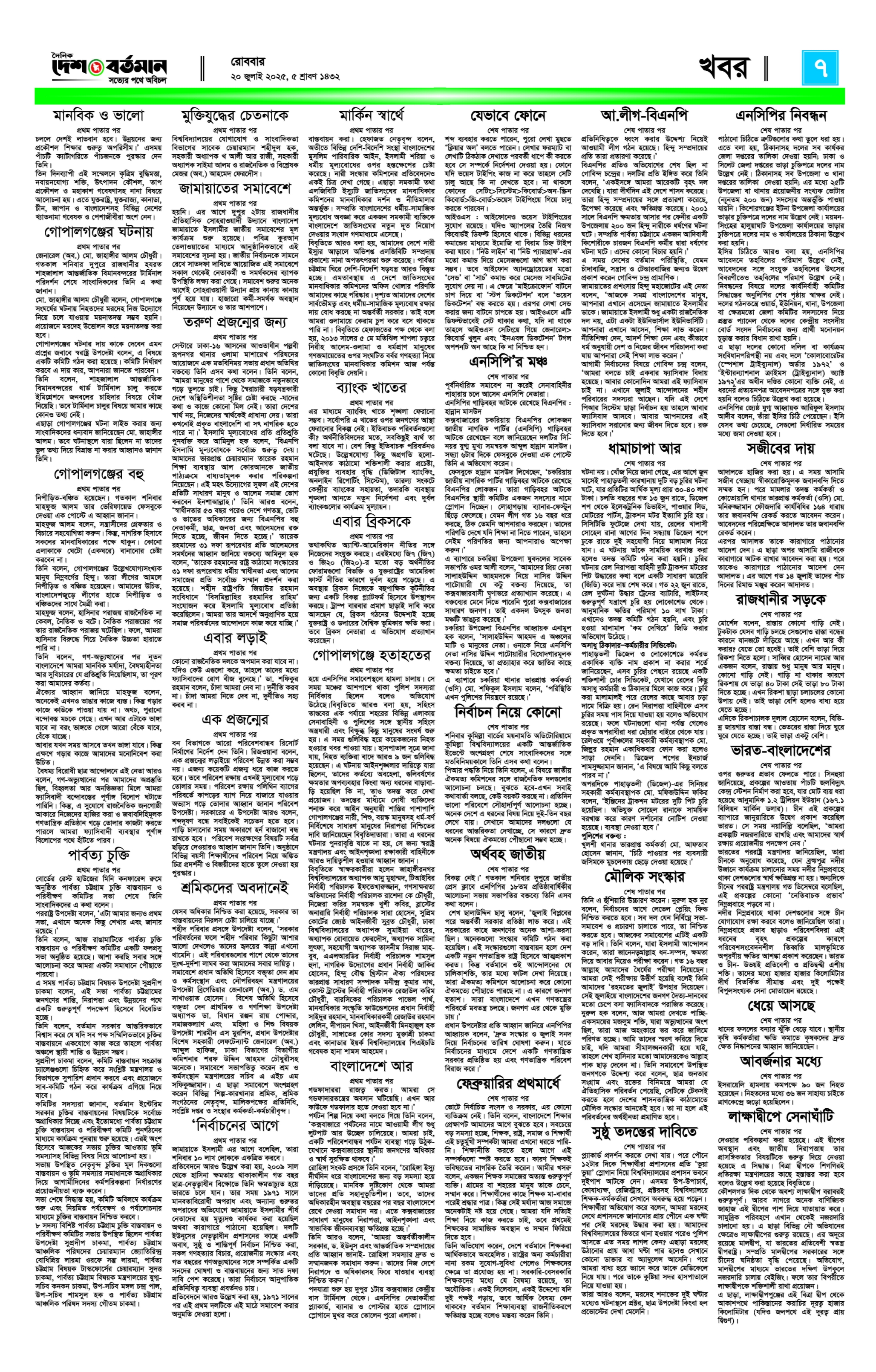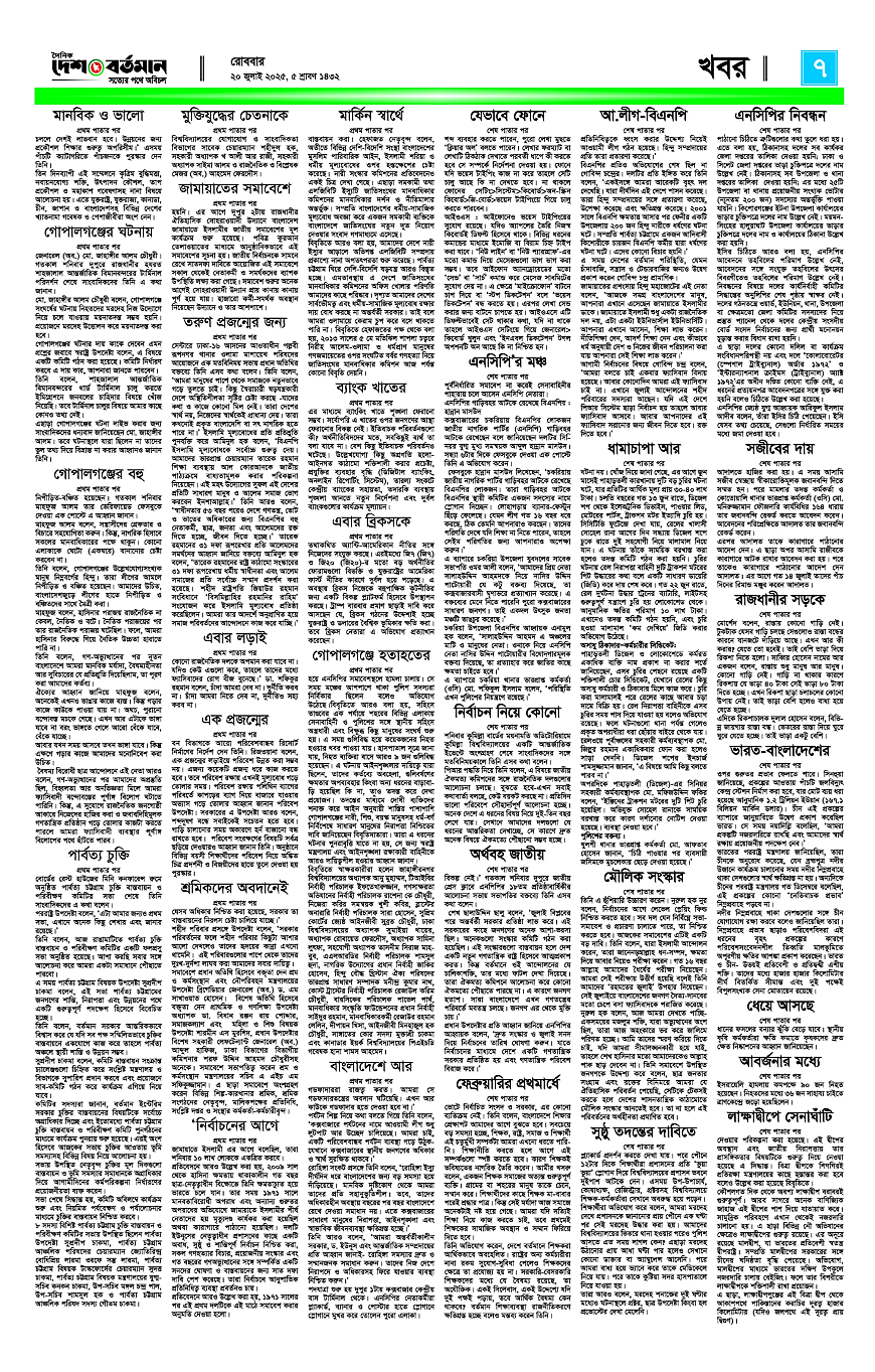 Desh Bartamab Page: 7 July 20, 2025 5 6 7 8 Page 1Page 2Page 3Page 4Page 5Page 6Page 7Page 8 × Desh Bartamab 0102030405060708 << First << 7 >> Last >> Page no 1Page no 2Page no 3Page no 4Page no 5Page no 6Page no 7Page no 8