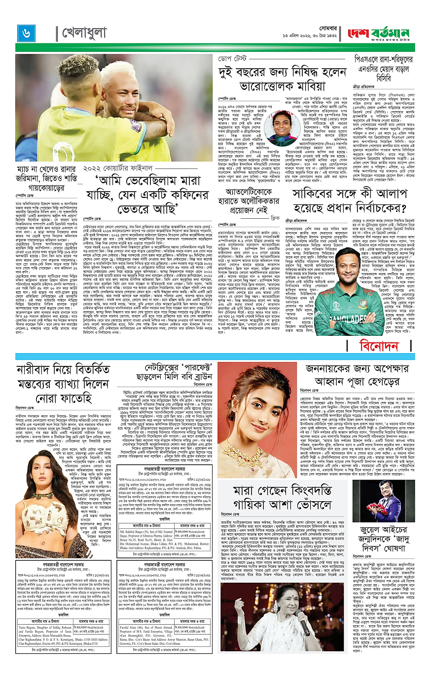Desh Bartaman Page: 6 April 13, 2026 4 5 6 7 Page 1Page 2Page 3Page 4Page 5Page 6Page 7Page 8 × Desh Bartaman 11023344556677IMG_20260413_171509 << First << 6 >> Last >> Page no 1Page no 2Page no 3Page no 4Page no 5Page no 6Page no 7Page no 8