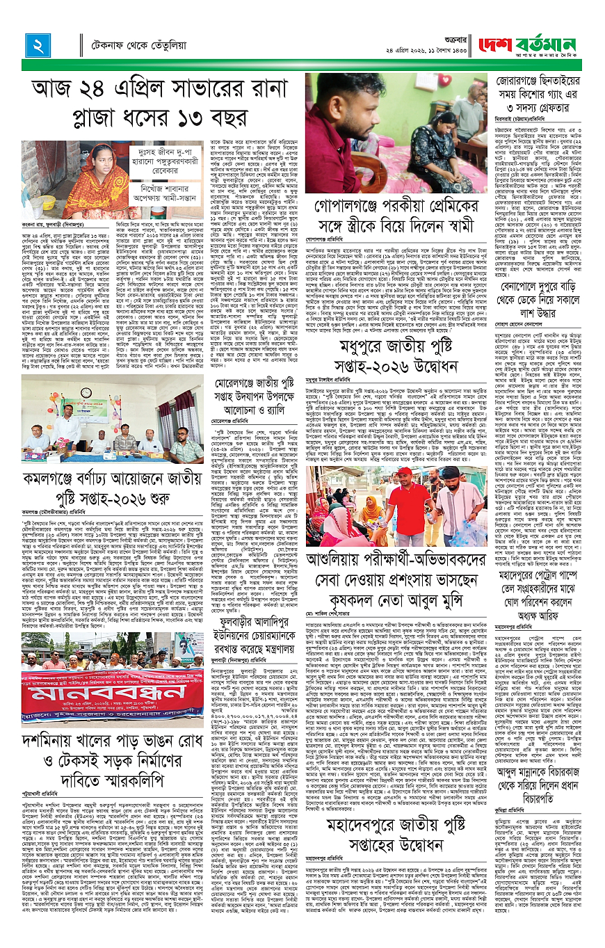 Desh Bartaman Page: 2 April 24, 2026 1 2 3 4 Page 1Page 2Page 3Page 4Page 5Page 6Page 7Page 8 × Desh Bartaman 1122334455667788 << First << 2 >> Last >> Page no 1Page no 2Page no 3Page no 4Page no 5Page no 6Page no 7Page no 8