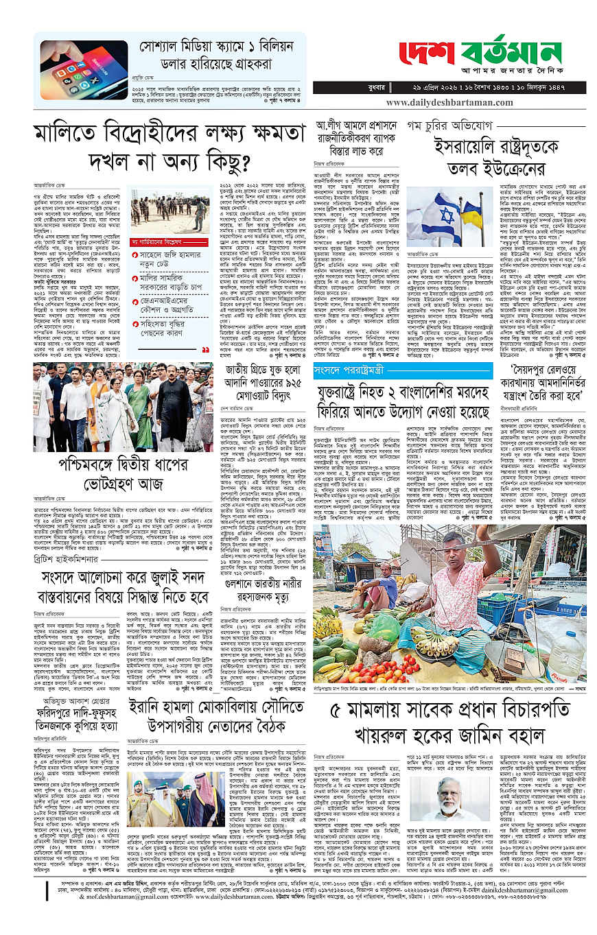 Desh Bartaman Page: 8 April 29, 2026 5 6 7 8 Page 1Page 2Page 3Page 4Page 5Page 6Page 7Page 8 × Desh Bartaman 1122334455667788 << First << 8 >> Last >> Page no 1Page no 2Page no 3Page no 4Page no 5Page no 6Page no 7Page no 8
