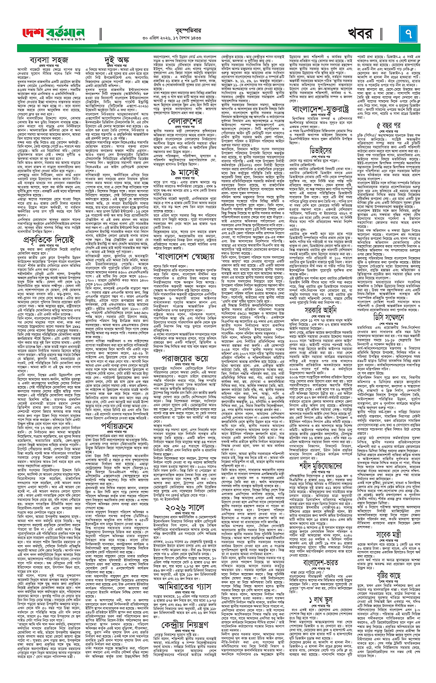 Desh Bartaman Page: 7 April 30, 2026 5 6 7 8 Page 1Page 2Page 3Page 4Page 5Page 6Page 7Page 8 × Desh Bartaman 1122334455667788 << First << 7 >> Last >> Page no 1Page no 2Page no 3Page no 4Page no 5Page no 6Page no 7Page no 8